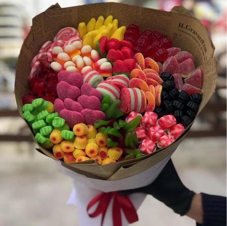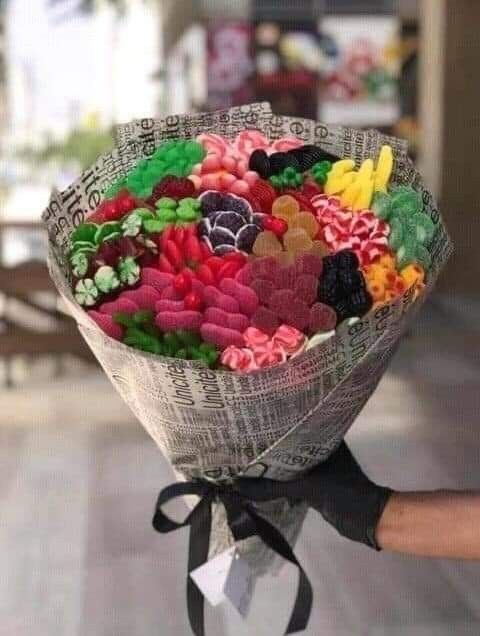 دسته گل هدیه پاستیل مخلوط مدل گرد کاغذی